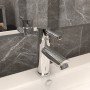Un buen grifo de lavabo es imprescindible en todo baño. Desde lavarse las manos hasta cepillarse los dientes y afeitarse, el práctico grifo del lavabo es perfecto para tu cuarto de baño. La construcción de latón macizo y el mango de metal hacen que este grifo para fregadero sea duradero y resistente. Este grifo presenta un diseño flexible de acero inoxidable de la manguera de conexión, lo que lo hace adecuado para la mayoría de los lavabos. Se puede conectar fácilmente a la mayoría de los sistemas básicos de presión de agua fría y caliente. Nota: El grifo debe limpiarse con regularidad, de lo contrario, la capa de revestimiento se puede corroer.