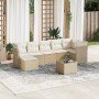 Juego de sofás de jardín 7 piezas con cojines ratán PE marrón