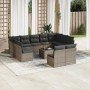 Set de sofás de jardín y cojines 12 pzas ratán sintético marrón