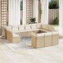 Set sofás de jardín 14 pzas con cojines ratán sintético negro