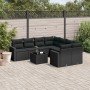 Set de sofás de jardín 9 pzas con cojines ratán sintético beige