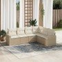 Set sofás de jardín 7 piezas y cojines ratán sintético beige