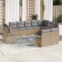 Set de sofás de jardín 10 pzas y cojines ratán sintético marrón