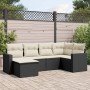 Set de sofás de jardín 6 piezas y cojines ratán sintético negro