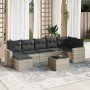Set de comedor de jardín 7 pzas y cojines ratán sintético negro