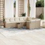 Set de sofás de jardín 9 pzas con cojines ratán sintético beige