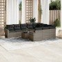 Set de sofás de jardín 11pzas con cojines ratán sintético beige