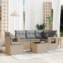 Set de sofás de jardín 6 piezas y cojines ratán sintético negro
