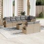 Set de sofás de jardín 9 pzas con cojines ratán sintético beige