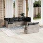 Set de sofás de jardín 9 pzas con cojines ratán sintético beige