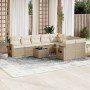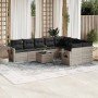Set muebles jardín 9 pzas y cojines ratán sintético gris claro