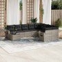 Set de sofás de jardín 10 pzas con cojines ratán sintético gris