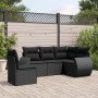 Set de sofás de jardín 6 piezas y cojines ratán sintético negro