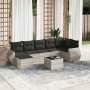 Set de comedor de jardín 7 pzas y cojines ratán sintético negro