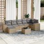 Set de comedor de jardín 7 pzas y cojines ratán sintético negro