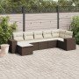 Set de sofás de jardín 7 pzas con cojines ratán PE gris claro