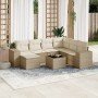 Set sofás de jardín 7 piezas y cojines ratán sintético beige
