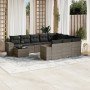 Set de sofás de jardín 11 pzas y cojines ratán sintético gris