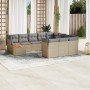 Set de sofás de jardín 11 pzas y cojines ratán sintético negro