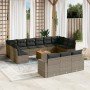 Set sofás de jardín 14 pzas con cojines ratán sintético beige