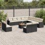 Set sofás de jardín 14 pzas con cojines ratán sintético negro