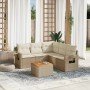 Set de sofás de jardín 6 piezas y cojines ratán sintético negro