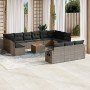 Set sofás de jardín 14 pzas con cojines ratán sintético beige