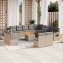 Set sofás de jardín 14 pzas con cojines ratán sintético negro