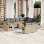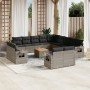 Set sofás de jardín 14 pzas con cojines ratán sintético negro