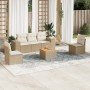 Set de sofás de jardín 6 piezas y cojines ratán sintético negro