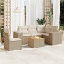 Set de sofás de jardín 6 piezas y cojines ratán sintético negro