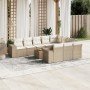 Set de sofás de jardín 11 pzas y cojines ratán sintético negro