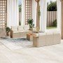 Este conjunto de sofás de jardín es el complemento perfecto para el jardín, terraza o patio, ya que proporciona un espacio confortable y acogedor para charlar con familiares y amigos o simplemente relajarte y disfrutar del aire libre. Material duradero: El ratán PE, también conocido como ratán sintético, es un material sintético resistente y de bajo mantenimiento que se parece al ratán natural. Es ligero, fácil de limpiar y se usa comúnmente para muebles de exterior debido a su durabilidad y propiedades resistentes a la intemperie.Superficie estable y fácil de limpiar: Esta mesa de jardín tiene una superficie de madera de acacia que es resistente, duradero y fácil de limpiar con un paño húmedo.Funda desenfundable y lavable: Estos cojines de asiento cuentan con fundas desenfundables para facilitar el lavado y mantenimiento.Estructura robusta y estable: La estructura de acero con recubrimiento en polvo garantiza que el mueble de jardín sea resistente y estable para usarlo a diario al aire libre.Diseño modular: Este conjunto de muebles de exterior tiene un diseño modular, por lo que es completamente flexible y fácil de mover, para que puedas crear una disposición de muebles de exterior personalizada. Información útil:Para asegurarte de que tus muebles de exterior se mantengan hermosos, recomendamos protegerlos con una funda impermeable.