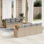 Juego de sofás de jardín con cojines beige 8 pzas ratán PE