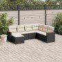 Set de comedor de jardín 7 pzas y cojines ratán sintético negro