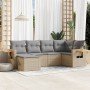 Set de sofás de jardín 7 piezas con cojines ratán PE gris