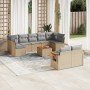 Set de sofás de jardín 9 pzas con cojines ratán sintético beige