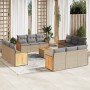 Set de sofás de jardín 12 piezas cojines ratán sintético negro