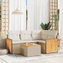 Juego de sofás jardín 4 pzas con cojines ratán sintético negro