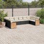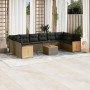 Set de sofás de jardín 11 pzas y cojines ratán sintético negro
