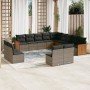 Set de sofás de jardín y cojines 13 pzas ratán sintético negro