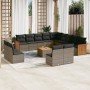 Set sofás de jardín 14 pzas con cojines ratán sintético negro