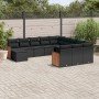 Set de sofás de jardín y cojines 13 pzas ratán sintético negro