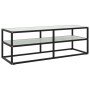 Este mueble para TV, con un diseño elegante y aerodinámico, está destinado a ser un aporte práctico a tu hogar. Este armario estéreo está hecho de vidrio templado, robusto y estable. También es fácil de limpiar con un paño húmedo. La estructura de acero con recubrimiento en polvo aumenta su robustez. El estante debajo de la mesa ofrece un amplio espacio de almacenaje para mantener tus DVD, dispositivos multimedia, libros y pequeños artículos esenciales organizados y al alcance.