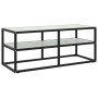 Este mueble para TV, con un diseño elegante y aerodinámico, está destinado a ser un aporte práctico a tu hogar. Este armario estéreo está hecho de vidrio templado, robusto y estable. También es fácil de limpiar con un paño húmedo. La estructura de acero con recubrimiento en polvo aumenta su robustez. El estante debajo de la mesa ofrece un amplio espacio de almacenaje para mantener tus DVD, dispositivos multimedia, libros y pequeños artículos esenciales organizados y al alcance.