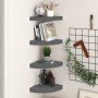 Este elegante estante de esquina es ideal para exhibir tus libros favoritos, adornos, fotos, premios, etc. Este estante de exhibición, hecho de MDF nido de abeja de calidad y metal fuerte, es estable y duradero. Con un sistema de montaje invisible, el estante de pared es fácil de instalar y sirve como el lugar perfecto para guardar los artículos como premios, libros, coleccionables, adornos, etc. Este estante flotante se adapta a cualquier decoración y convierte una pared vacía en una característica de diseño!
