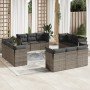 Set de sofás de jardín y cojines 12 pzas ratán sintético marrón
