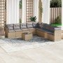 Set de sofás de jardín 9 pzas con cojines ratán sintético beige