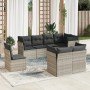 Set muebles jardín 9 pzas y cojines ratán sintético gris claro