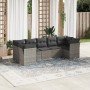 Set de comedor de jardín 7 pzas y cojines ratán sintético negro